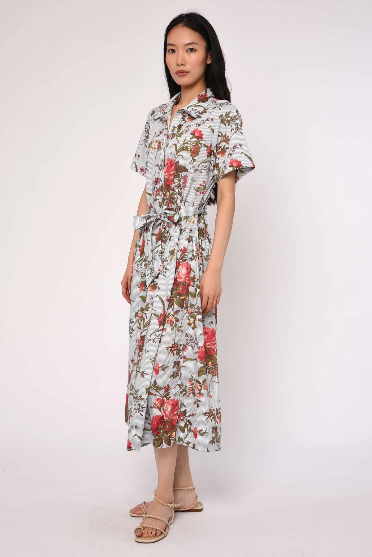 Love the Label’s take on a classic shirt dress, featuring a fully functional button up placket with delicate shell buttons. It has a slight dropped ruffled waist with soft gathering for the perfect amount of fullness. And a belted tie to create a flattering waist hugging silhouette.