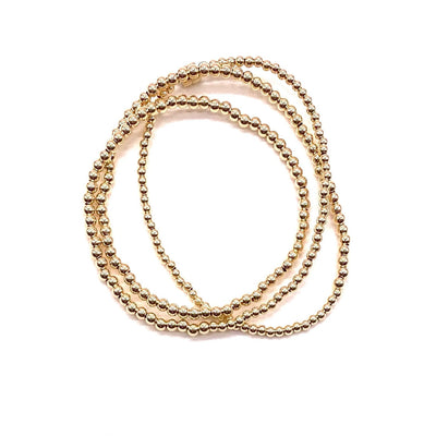 Triple Wrap Gold Beaded 3mm Stretch Bracelet