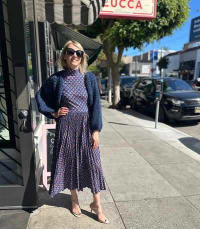 Ivory/Navy/Teal Lofty Cotton Crochet Trim Cardigan