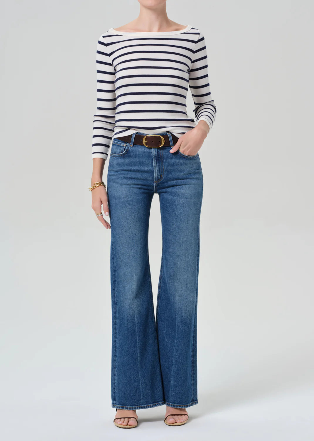 The Kimberly is a high-rise flare inspired by classic '70s silhouettes, designed to elongate the leg and contour the waist. Crafted from comfort stretch denim with a super soft hand, it offers lasting shape and all-day ease. The Cruise wash—a medium-to-dark indigo with soft fading and marbling—adds vintage character. Style with slim knits or structured shirting for a clean finish.