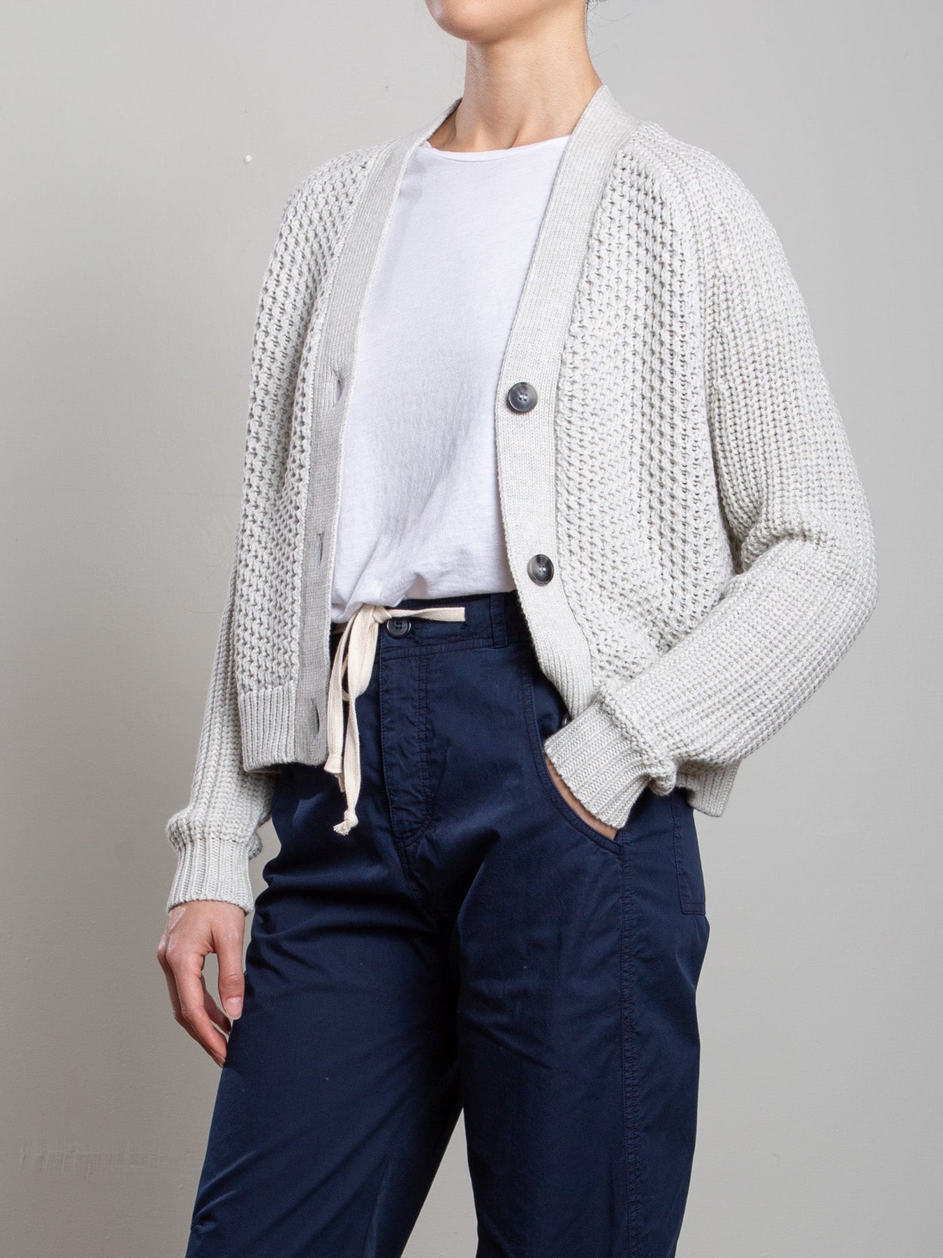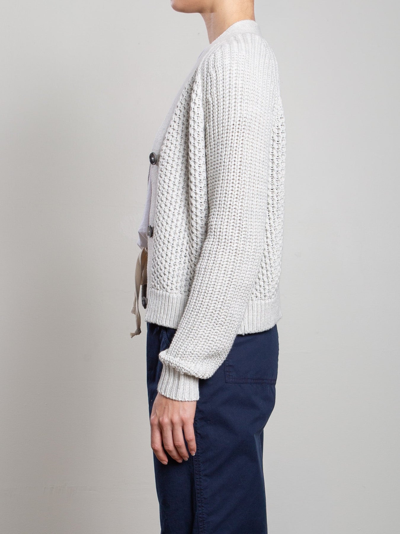 V-neck cardigan with novelty honeycomb stitch in the body and ribbed accents.
