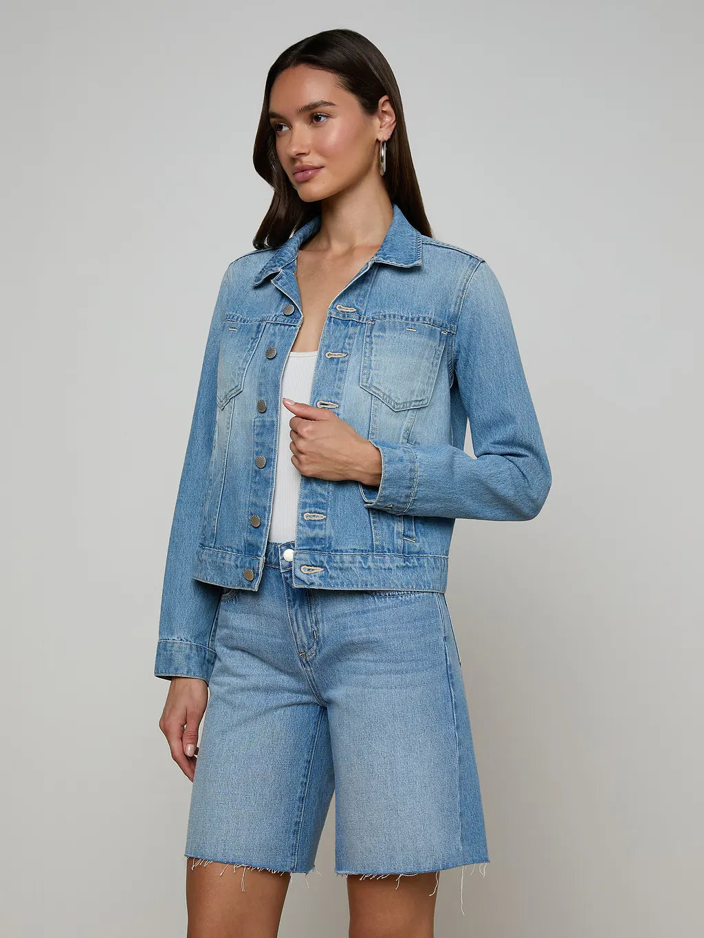 The original L’AGENCE jean jacket is back in a light denim wash. Incredibly versatile and easy to wear, the Celine is an all-season essential that's cut for a feminine and polished look.