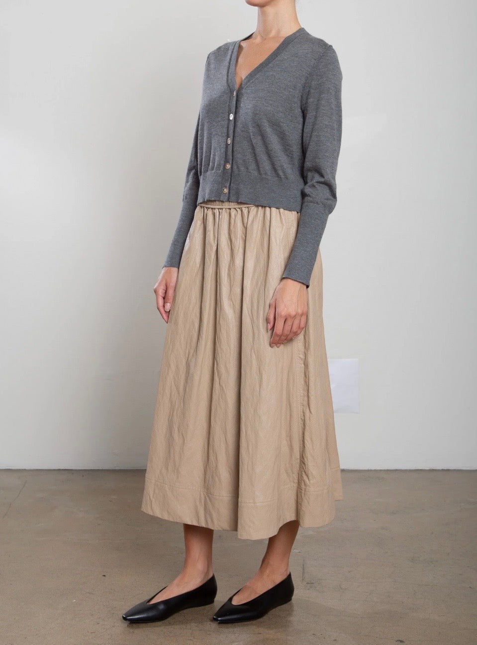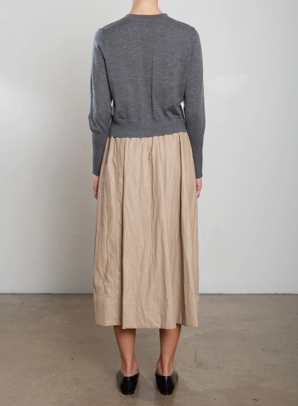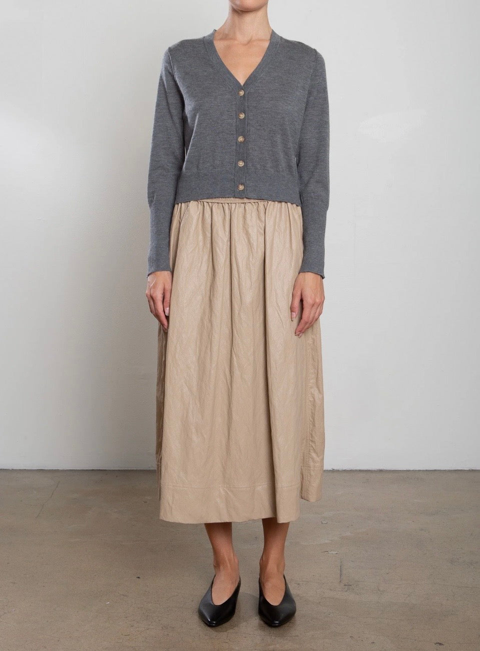 Full Midi skirt with side panel detailing and elastic waist.