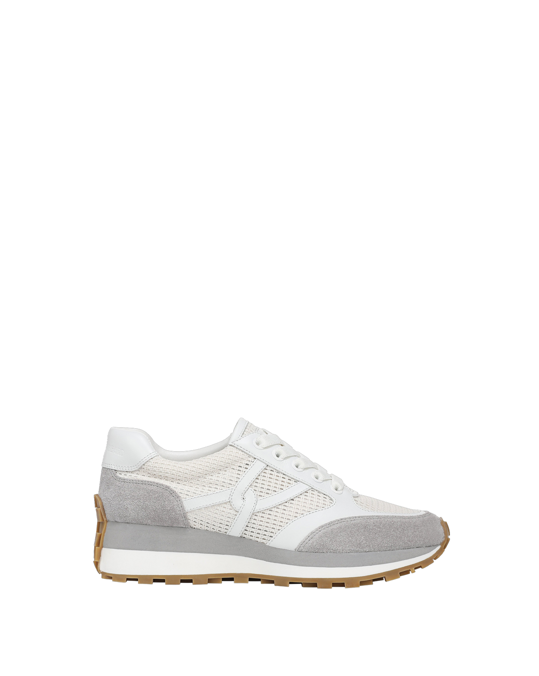 The best-selling Valentina sneaker combines flattering lines and comfort—with a two-inch lift. Made from grey suede and white leather and mesh, the two-tone design features a padded collar and a cushioned midsole for all-day comfort while the rubber outsole provides traction and grip. Finished with an interlocking-V design—a nod to our logo—it’s made for both getaways and every day.