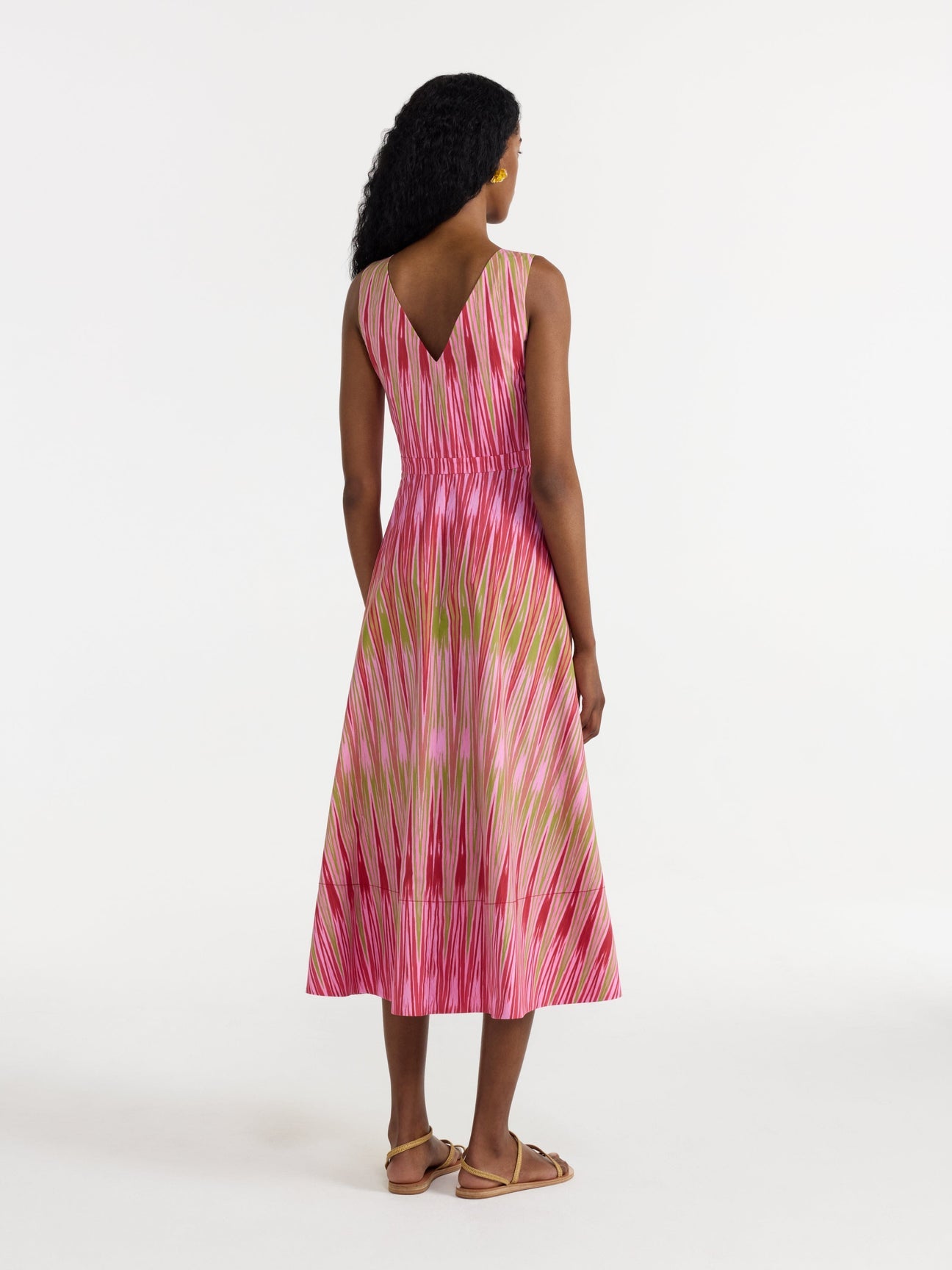 The Zoey Dress is a classic SALONI SHAPE with an A-line silhouette in soft cotton, embodying soigné ease. The matching belt complements a V-neckline with a button-down front and patch-pocket details. The Uzbek-inspired print interweaves vivid pink and lime-green hues in abstracted blocks, emphasising the dress’s meticulous cut. An effortlessly elegant piece that can be styled with sneakers or heels to suit different occasions.