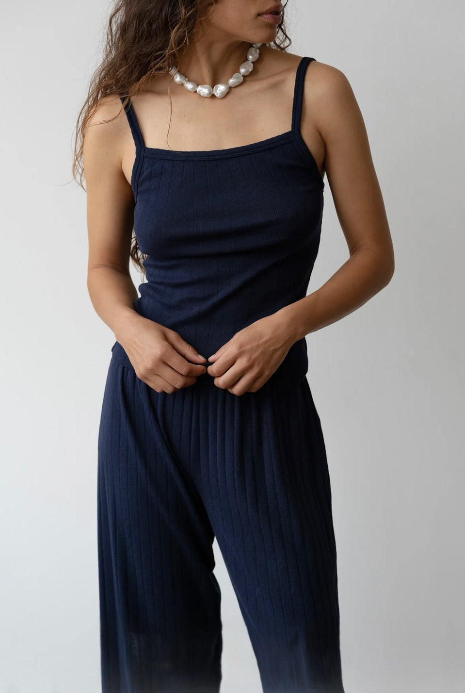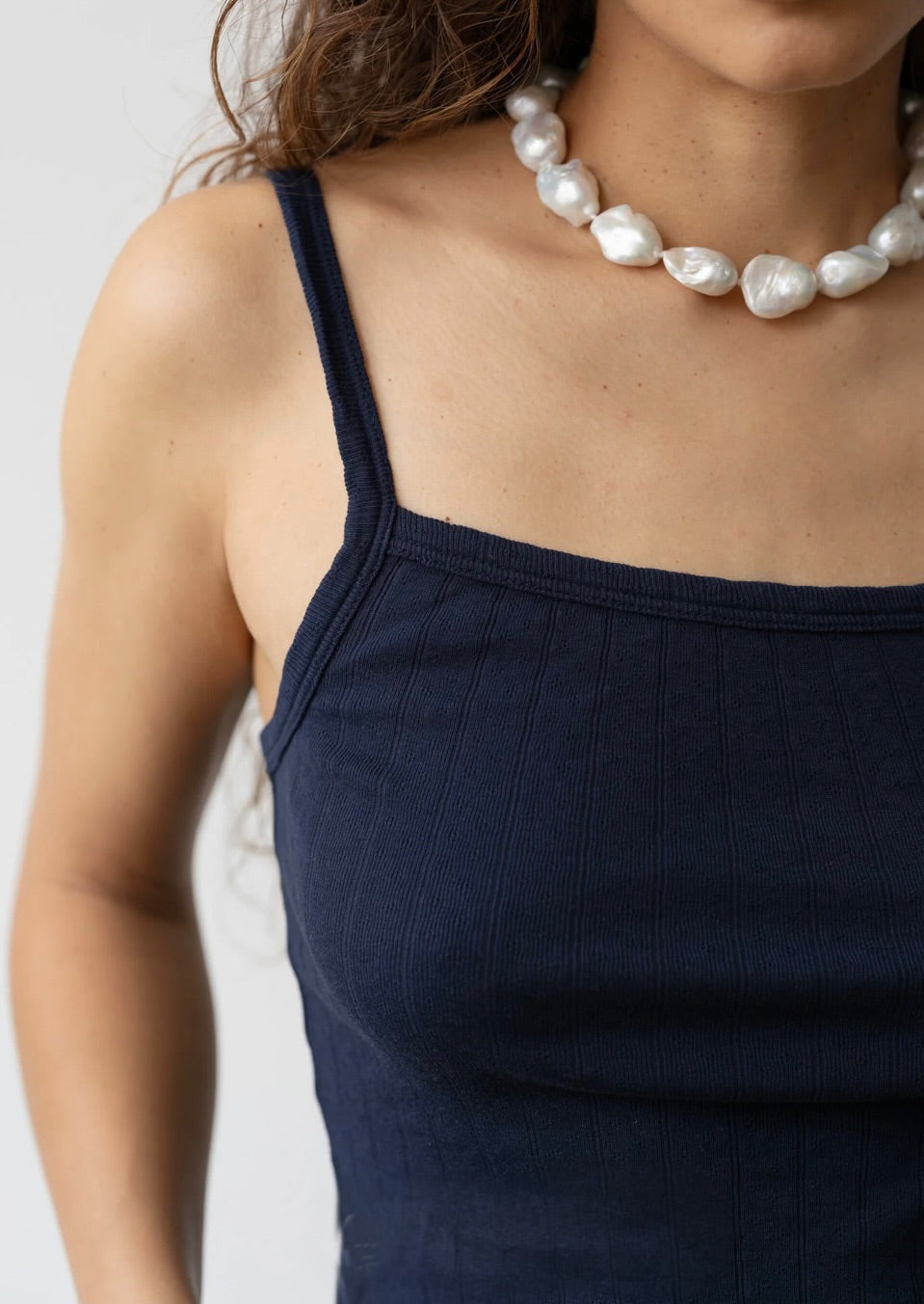 Navy Pointelle Square Neck Tank