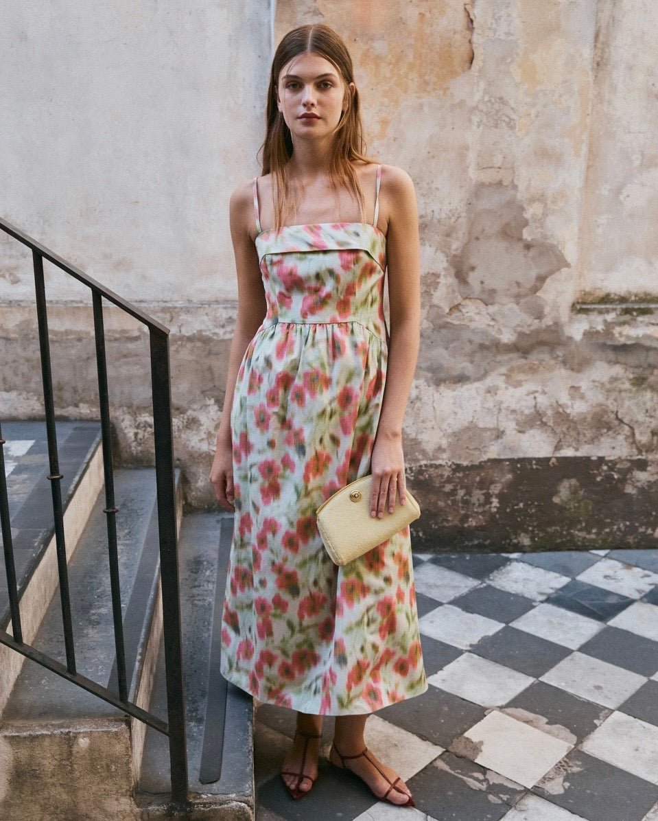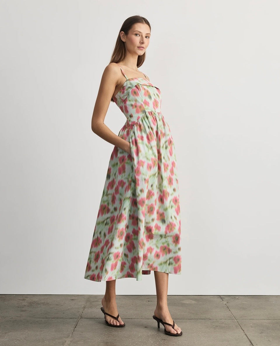 A standout style of the season in a fresh floral printed taffeta, the Gigi Dress is an elevated silhouette with a sophisticated ease.